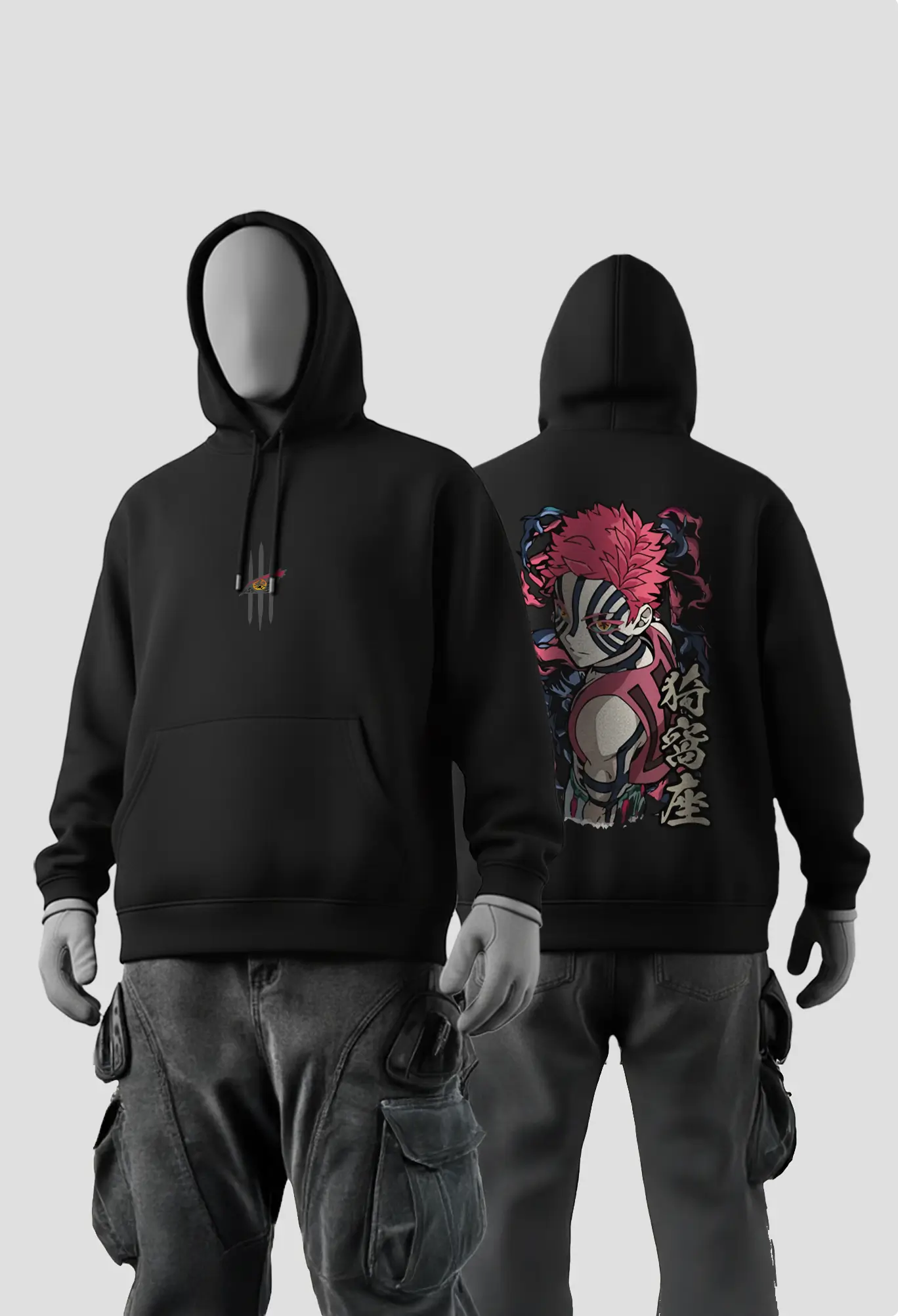 The Akaza Hoodie channels the aura of one of Demon Slayer’s most iconic Upper Moons — fierce, bold, impossible to ignore.