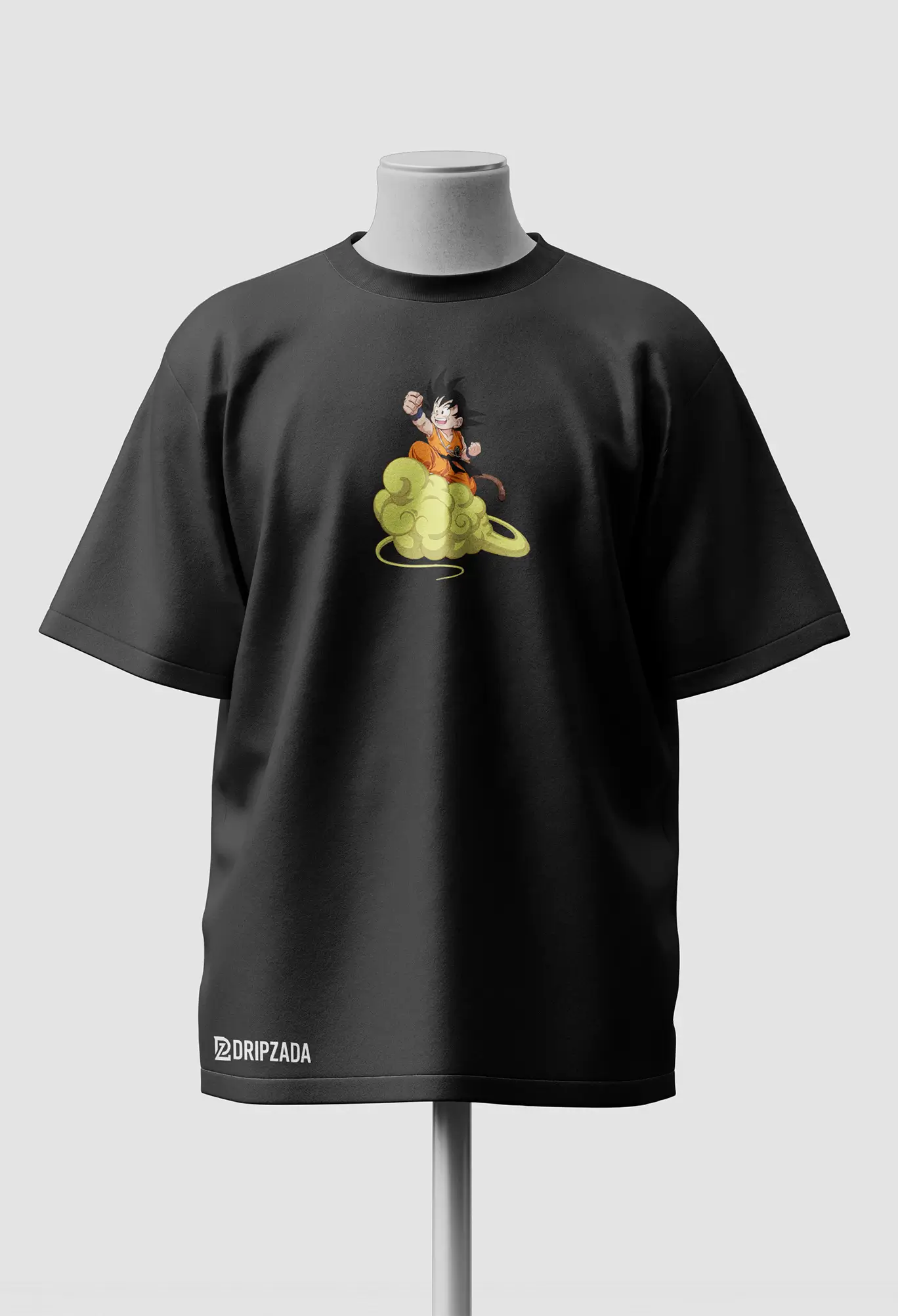 Step back into your childhood with this Kid Goku Flying Nimbus Oversized T-Shirt — a bold tribute to the iconic Dragon Ball era.