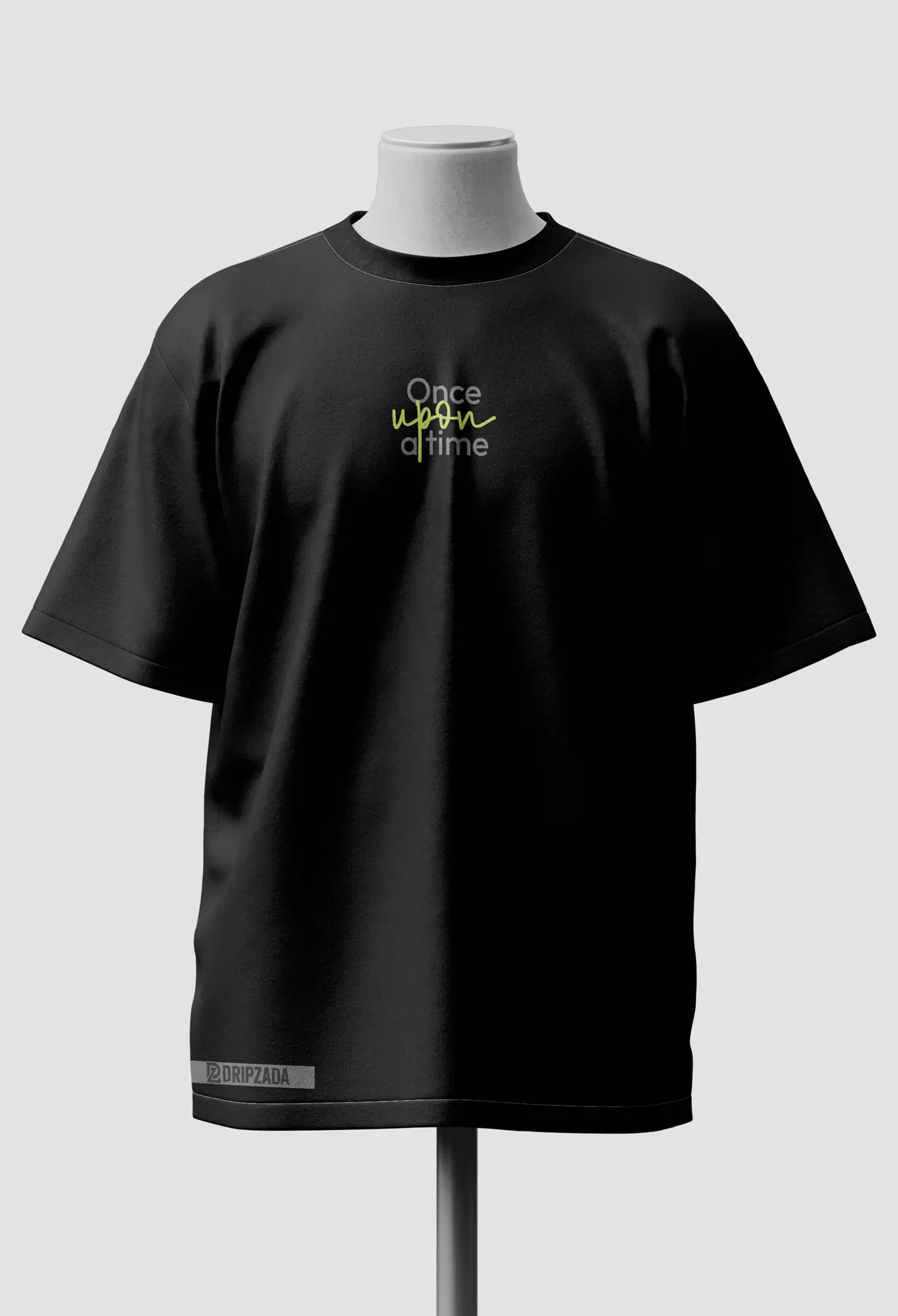 This oversized black tee from Dripzada merges modern minimalism with cultural roots, featuring “Once Upon a Time” in sleek English typography on the front, and its Urdu translation in a bold, graphic style on the back. Perfect for those who love fashion with meaning.